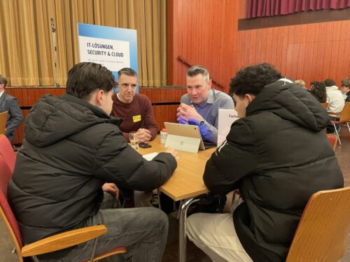 Den Stellenwert der Veranstaltung verdeutlichen auch die rund 60 Referentinnen und Referenten – es war ein bunter Mix aus erfahrenen und jüngeren Expertinnen und Experten aus den verschiedensten Berufsfeldern –, die den rund 150 Schülerinnen und Schülern Rede und Antwort standen. Einigen Referentinnen und Referenten musste sogar abgesagt werden; selbst das Foyer der Stadthalle Erkrath wurde für die Gespräche im Speeddating-Format mitgenutzt. Normalerweise gibt es drei je 20-minütige Gesprächsrunden an den Tischen in der Stadthalle – eine vierte wurde noch kurzfristig angehängt.