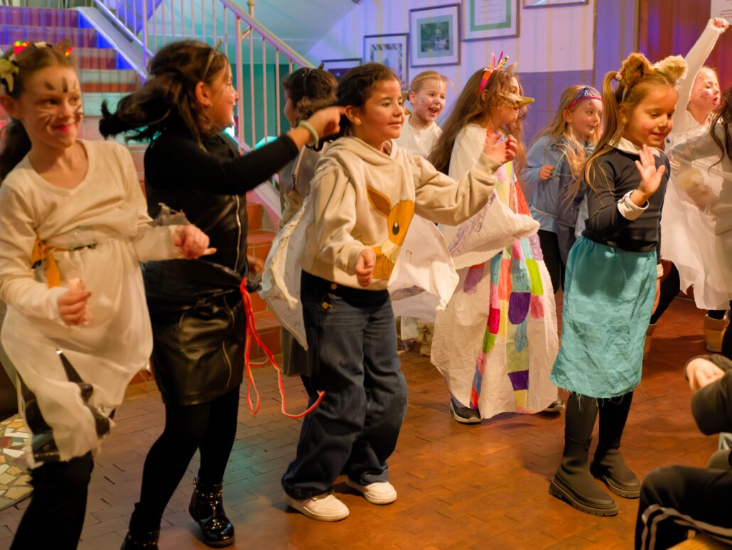Die Kostüme, die von den Kindern anschließend präsentiert wurden, sind in einem seit September laufenden Kunstkurs unter dem Motto „Die Konferenz der Tiere“ unter Leitung von Anka und Julia Herbster entstanden. „Die Kostüme sind mit viel Liebe über viele Wochen entstanden“, erklärte Anka Herbster dem Publikum vor dem Start der Modenschau. Gestaltet waren diese aus ganz unterschiedlichen Materialien, wie Stoff, Tüll, Draht, Papier und Pappe, die die Kids selbst nähen, kleben und modellieren konnten. Grundlage waren ganz individuelle Entwürfe der Kinder.