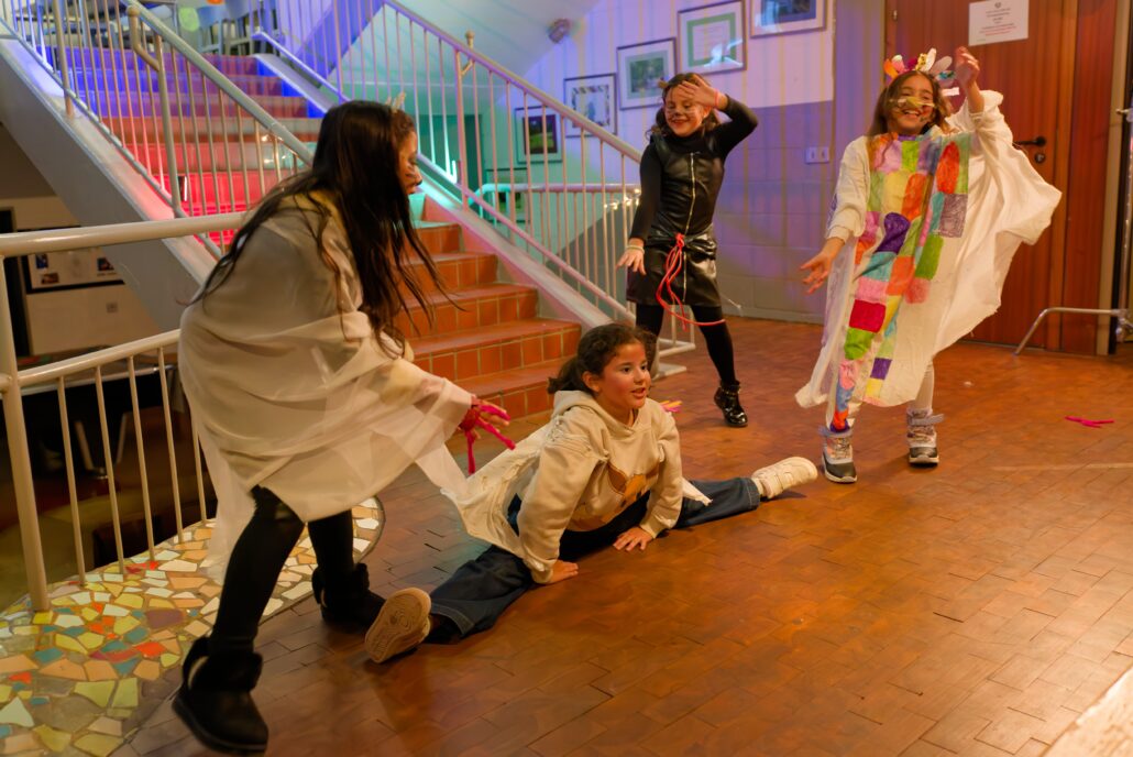 Mit den fertiggestellten Kostümen ging es für die Kinder in ein Fotoshooting, bei dem sie nicht nur vor der Kamera standen, sondern auch die Grundlagen der Fotografie vom Setup mit Beleuchtung und vielem mehr erfuhren. Den Fotoworkshop führte Ilayda Sayilgan mit den Kindern durch, die auch die Modenschau fotografisch begleitete. Möglich wurde das Projekt durch eine Förderung aus dem Programm Kulturrucksack NRW und von der Gleichstellungsstelle der Stadt Erkrath. Gleichstellungsbeauftragte Annegret Pollmann hatte es sich dann auch nicht nehmen lassen und saß selbst im Publikum der Modenschau.