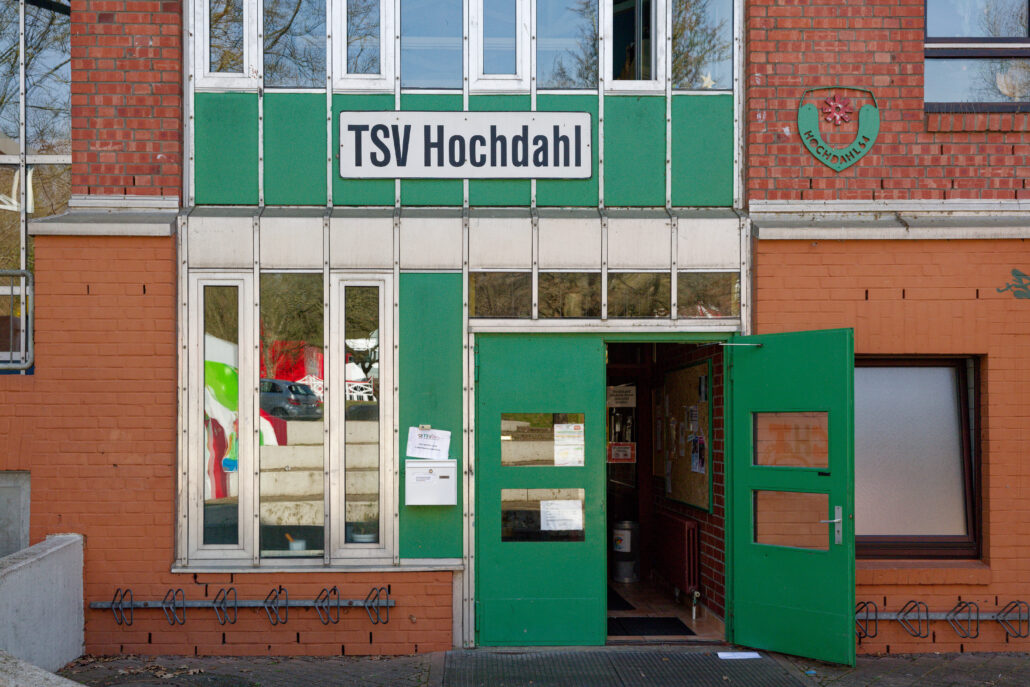 Die im Artikel der Bauwelt von 1980 abgebildeten Pläne weisen dort, wo heute der Eingang zum TSV Jugendzentrum ist, noch eine KFZ-Werkstatt aus. Zwei Jahre später in der Broschüre Stahl und Form ist dieser Raum in den Plänen dann als Holzwerkstatt eingetragen. Ob dort je Autos repariert wurden oder mit Holz gewerkt wurde, können sich nur ältere Hochdahler, die sich noch an die Anfänge erinnern, sagen.