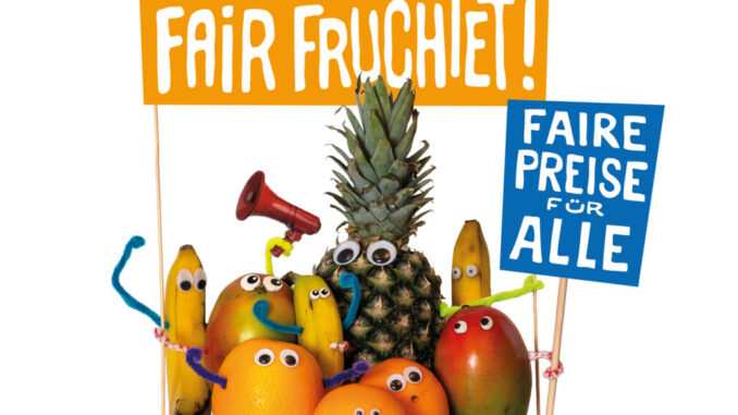 Unter dem Motto „Fair Fruchtet“ zeigen viele Weltläden wie Früchte produziert werden, wer daran beteiligt ist und wie der Faire Handel entlang der Lieferketten für gerechtere Preise, faire Entlohnung und bessere Lebensbedingungen sorgt.