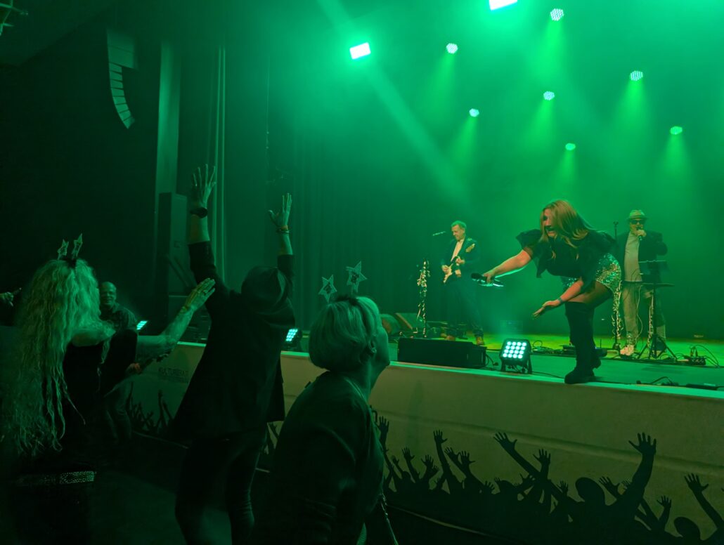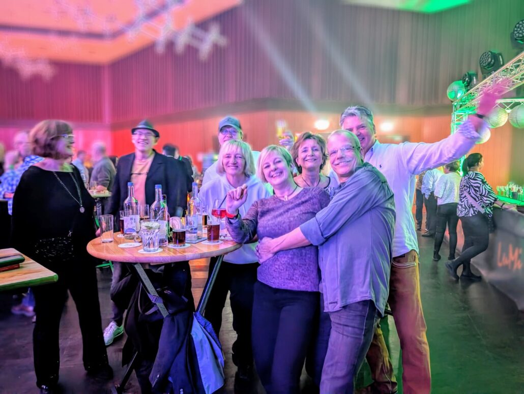 Musikalisch bot der Abend ein abwechslungsreiches Programm. Im festlich geschmückten Foyer, dekoriert mit schwarzen und goldenen Lampions, sorgten DJ LANZA und DJ SANY von Beginn an für ausgelassene Stimmung. Tanzbegeisterte Gäste kamen hier voll auf ihre Kosten, und dem perfekt aufeinander eingespielten Duo war der Spaß an ihrer Arbeit förmlich ins Gesicht geschrieben.In der Halle wechselten sich die Band QuerfeldBeat und DJ Thorsten Classe ab und sorgten den gesamten Abend über für beste Partylaune. QuerfeldBeat hielt, was sie auf ihrer Website versprechen: Live-Musik quer durch alle Genres und Epochen. Die vier Musiker begeisterten das Publikum mit Spielfreude und Vielseitigkeit. DJ Thorsten Classe erfüllte zahlreiche Musikwünsche und traf jederzeit den richtigen Ton. Ob auf der Tanzfläche oder an den Tischen – die Stimmung war spürbar fröhlich und ausgelassen. „Was für ein schöner Abend – die Zeit verfliegt förmlich“, schwärmten einige Gäste.
