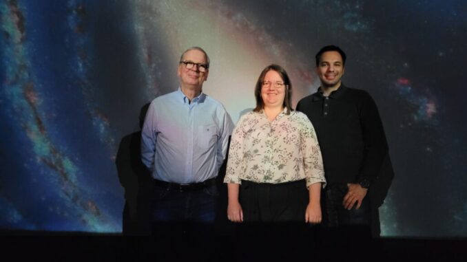 Das Planetarium hat bis zum Januar 2026 wieder ein umfangreiches Programm auf die Beine gestellt. In kleiner Runde präsentierten Magdalena Kapela, Maximilian Mucha, Stefan Ueberschaer und Dr. Matthias Kolb das Programm des snh. Passend zum Programmstart wurde übrigens die Bushaltestelle „Erkrath, Bürgerhaus“ zum 28. August 2025 in „Bürgerhaus / Planetarium“ umbenannt. Das sorgt für mehr Sichtbarkeit. Nicht Ortskundige finden in der Fahrplanauskunft für den ÖPNV nun leichter den Weg zum Planetarium.