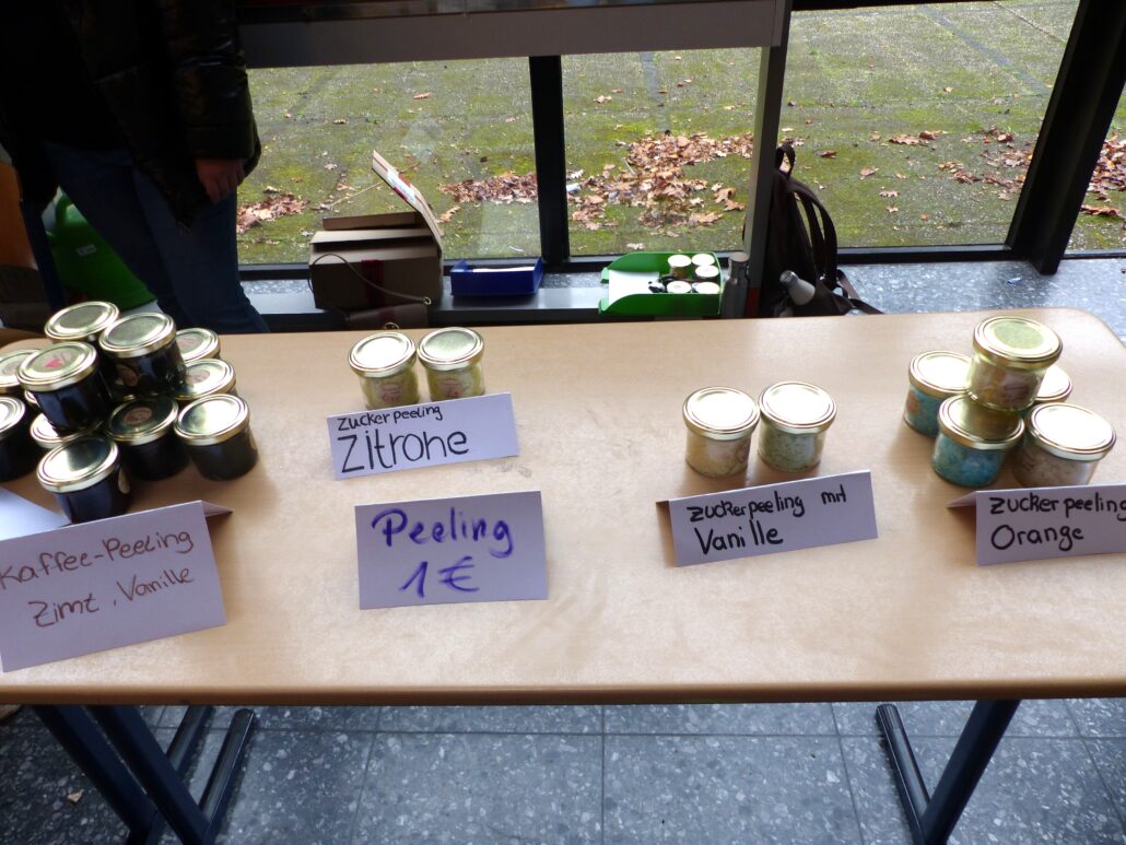Das Projekt Selfcare – Ich bin mir wichtig fand viel Beachtung. Auf einigen Tischen waren Kartons mit einem Loch in der Mitte aufgestellt, die mit Objekten der unterschiedlichsten Art befüllt waren. Mal waren es Tempotaschentücher, mal Kleinigkeiten aus dem Haushalt und andere Sachen. Die Aufforderung lag darin zu ertasten, was sich im jeweiligen Karton befindet, ohne dass man es sehen kann. Sarah Böning, Marion Riehl, Nicole Kühne und Kerstin Terwege, die als Lehrerinnen das Objekt betreuten, gelobten auf Ehre und Gewissen, dass sich kein Hundehaufen in den Kartons befindet. Kernpunkt war den Schülern zu vermitteln, dass sie mit ihrer Zeit sorgfältig umgehen sollten.