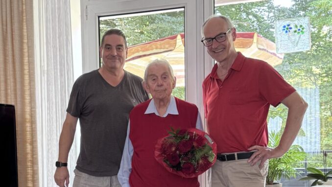 In seiner Hochdahler Wohnung gratulierten dem langjährigen Weggefährten heute seitens der SPD Erkrath Detlef Ehlert und Toni Nezi.