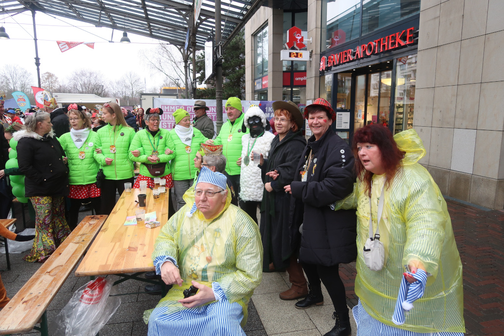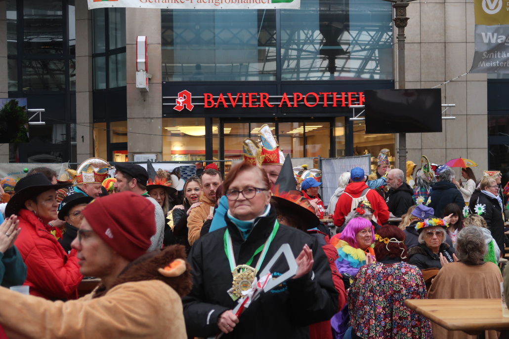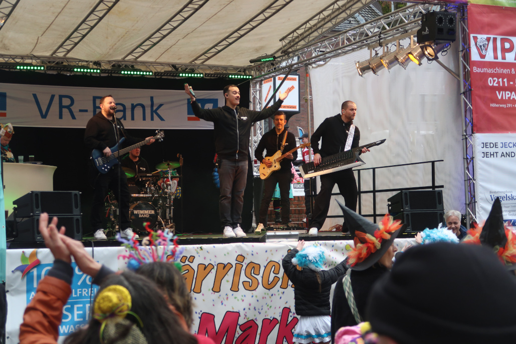 Regen, Kälte, weniger als 10 Grad: Keine guten Voraussetzungen für die Närrische Markthalle, die an Altweiber (12. Februar) mit der 11. Ausgabe ihr jeckes Jubiläum feierte. Doch das Publikum lies sich vom Wetter nicht unterkriegen und erlebte viel Musik unter der überdachten Markthalle.