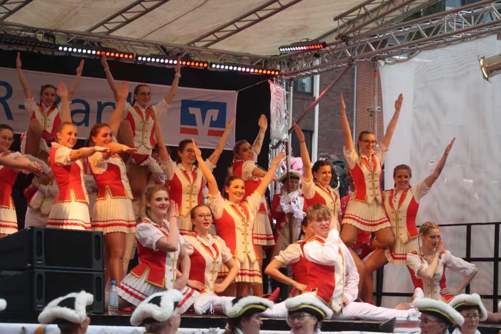 Zum umfangreichen Programm von 11:11 bis 18 Uhr gehörte Rainer Lieverscheidt, der gleich zu Beginn mit Klassikern wie „Die Sterne funkele“ gute Stimmung verbreitete. Die Vierscher Mispelblüten machten eine karnevalistische Reise nach Griechenland mit Gassenhauern wie „Griechischer Wein“, ihre Trainerin verriet, dass sie jedes Jahr neue Kostüme haben.