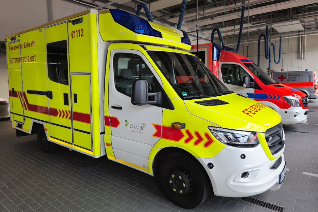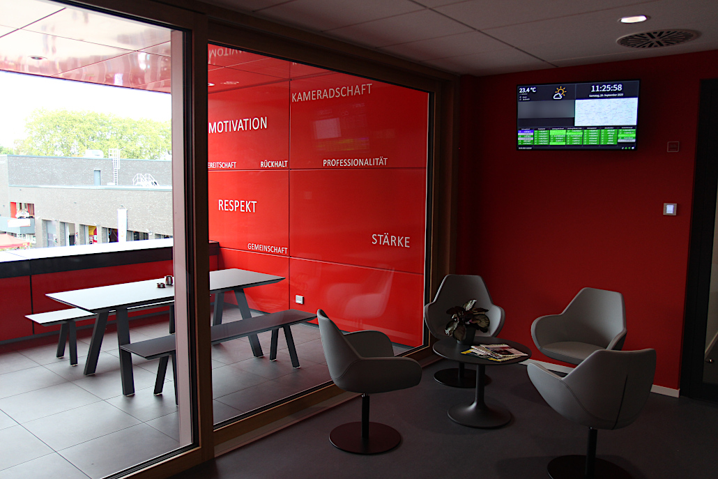 Die Rutschstangen verbinden jedoch immer nur das jeweils darunter liegende Geschoss, aus dem Verwaltungsteil im zweiten Geschoss muss man somit einmal „umsteigen“. Das sei gewollt, da sonst die Geschwindigkeit beim Rutschen zu hoch werden würde. Die Verwaltungsaufgaben der Feuerwehr werden wiederum teilweise im „Home Office“ erledigt, auch werde vieles digitaler.