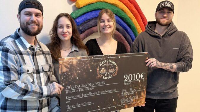 Am 12. Dezember 2025 konnten sich Tattoo-Fans ein 5×5 Zentimeter großes Tattoo zugunsten des Kinder- und Jugendhospizes Regebogenland in Düsseldorf stechen lassen und machten regen Gebrauch davon, wie die kürzlich erfolgte Spendenübergabe zeigte.