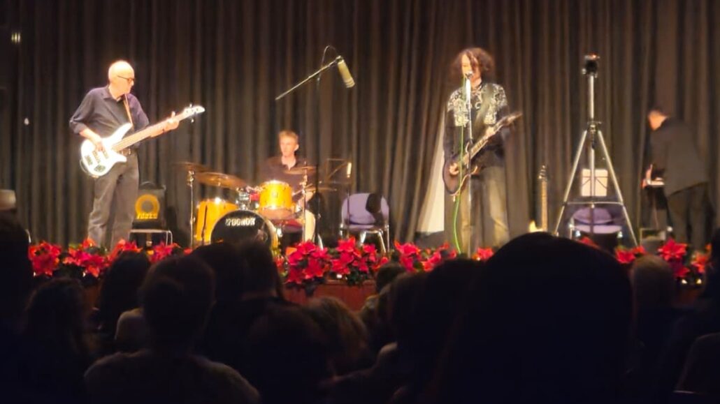 Auch der dritte Block begann mit einem Bläser-Quartett, nun allerdings auch mit höheren Instrumenten wie dem Horn. Guido Mallwitz bezeichnete es als „Joint Venture“, da zwei der vier Musiker aus der Musikschule aus Mettmann unterstützten. Auch diese Gruppe bereitet sich auf Jugend musiziert vor. Nach zwei Stücken des Quartetts folgten dann ein weiteres Solo, diesmal von Sophia Amelingmeyer, 17 Jahre alt, am Flügel, sowie zwei Stücke des Bandprojekts „Splitterklang“, die noch einmal einen ganz anderen Musikstil auf die Bühne brachten. Am Schlagzeug, an der Gitarre und am Bass wurde es deutlich rockiger. Sie spielten zwei Eigenkompositionen. Zum Schluss erklärte Sänger und Gitarrist Simon Büngener dann noch, dass die Band zur Zeit auf der Suche nach einem weiteren Gitarristen sei. Interessierte können sich gerne bei der Jugendmusikschule Erkrath melden.