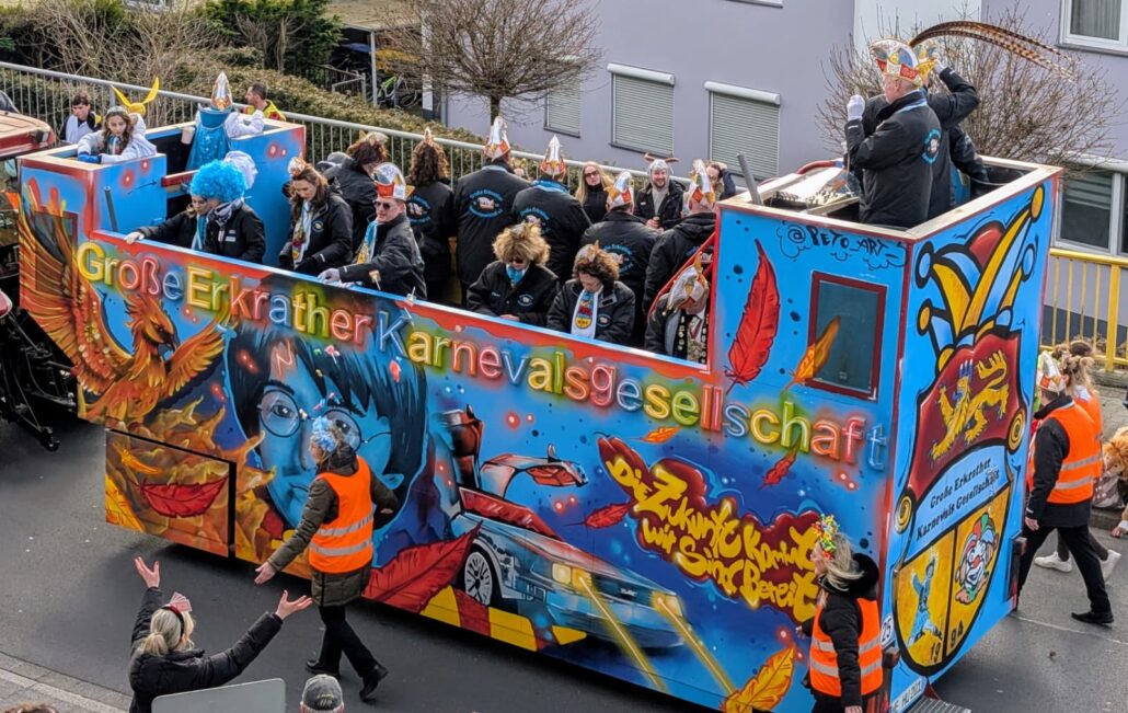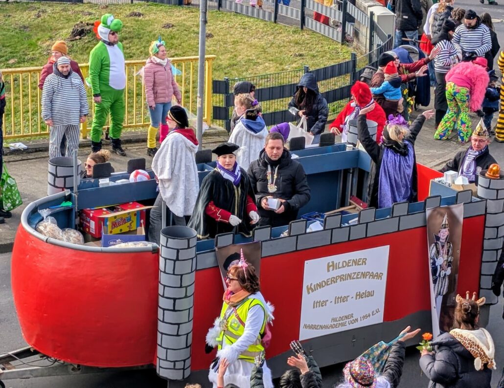 Über die Auszeichnung für den schönsten Zugwagen durfte sich die IG Erkrath freuen. Ihr Wagen, kunstvoll gestaltet von Michael Slatosch, beeindruckte mit detailreichen Avataren und viel Liebe zum Motiv. Der Sonderpreis ging an die Eulen der Hildener Narrenakademie, die in dieser Session das Kinderprinzenpaar der Stadt Hilden stellen. Jahr für Jahr näht sich die Gruppe neue, kreative Kostüme, die sie bei den Umzügen in Unterbach und Hilden präsentieren. Diesmal zogen sie als Weintrauben direkt hinter dem Wagen des Hildener Kinderprinzenpaares mit – ein farbenfrohes Bild, das die Zuschauer begeisterte.