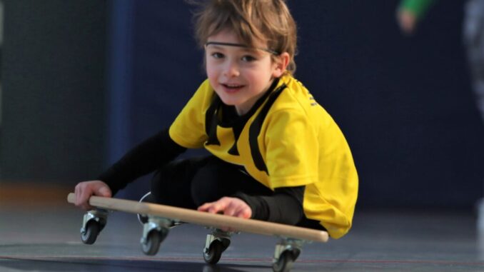 Hüpfen, balancieren, werfen – Kita-Kinder aus zwei Städten des Kreises Mettmann haben vor einigen Tagen das Winterminisportabzeichen absolviert. In Mettmann nahmen sieben Einrichtungen an der Aktion teil, in Hilden sogar neun. Zu der Veranstaltung hatten die Mitarbeitenden der Gesundheitsförderung des Kreisgesundheitsamtes eingeladen. In Mettmann trafen sich die Kita-Kinder in der Sporthalle des Heinrich-Heine-Gymnasiums (HHG). Unter der Leitung von Frank Mielke, koordinierender Sportlehrer des HHG, fand die Winteredition bereits zum dritten Mal statt. Zahlreiche engagierte Schülerinnen und Schüler des Gymnasiums unterstützten die Aktion und blieben dafür sogar am Zeugnistag freiwillig länger in der Schule, um die Kitakinder an den verschiedenen Stationen zu begleiten.