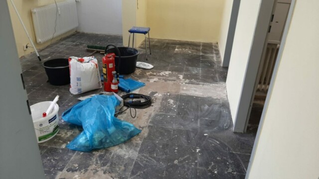 Ein bisschen Abhilfe kann das Rundum-Kaufhaus in Alt-Erkrath bieten. Dort können aktuell auch Kleiderspenden abgegeben werden, die eigentlich für Hochdahl gedacht sind. „Das funktioniert auch ganz gut“, ist sich Birgit Grüning sicher, die ebenso eine Hand voll ehrenamtlicher Helfer nach At-Erkrath vermitteln konnte. Die gerettete Kleidung aus dem Secondhandladen lagert derzeit in der ehemaligen Hausmeisterwohnung der angrenzenden Heiliggeist Kirche. „Dafür sind wir sehr dankbar. Dort stehen die Kartons erstmal trocken“, freut sich die Fachanleiterin, die sich trotzdem einen schnellen Umzug in die alten Räume wünscht. Diese sind aber aktuell noch immer von Feuchtigkeit durchsetzt. Überall musste der Boden entfernt werden, der blanke Estrich wird derzeit getrocknet. Und auch im Keller sieht man an den Wänden noch deutlich die Spuren der Verwüstung. „Wichtig ist, dass wirklich alles trocken ist. Sonst fängt die gelagerte Ware an zu riechen und es bilden sich Schimmelsporen. Das können wir nicht weiterverkaufen“, erklären die beiden SKFM-Mitarbeiter.